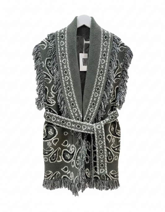 Sold outBandana Olive Print Long Vest