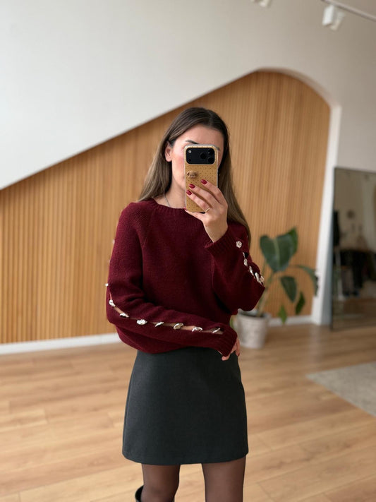 Burgundy Sleeve Silver Detailed Sweater