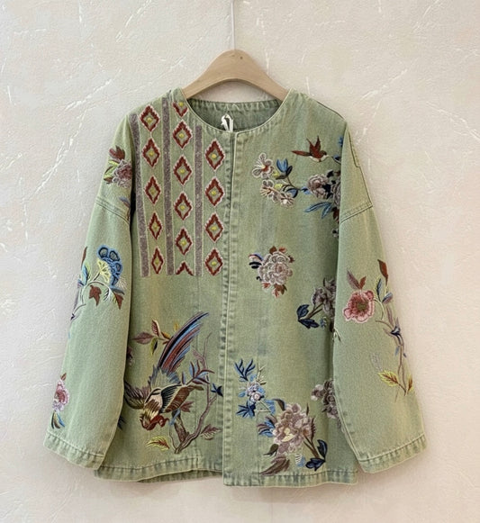Sold outDenim Green Embroidered Jacket