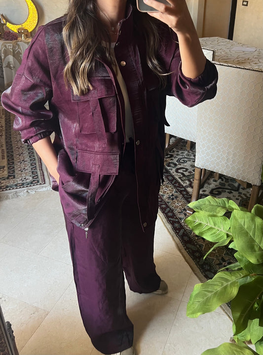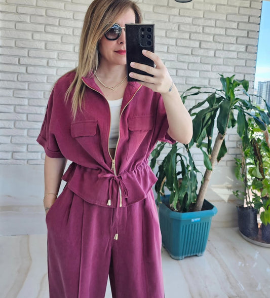 Viscose washed burgundy Set with Zipper details