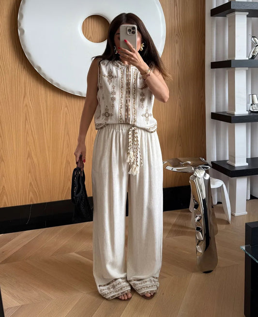 Sold outEmbroidered Beige Set