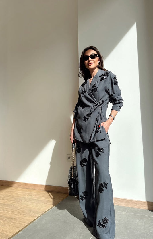 Sold outEmbroidered Dark Grey Set