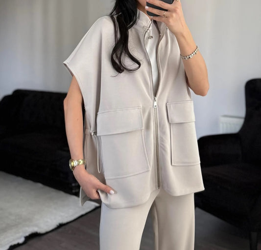 Viscose washed Blue Set with Zipper details