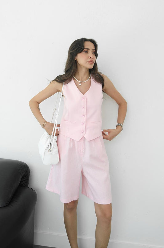 Linen Baby Pink Short Set