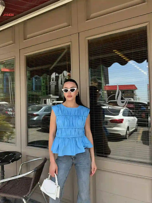 Italian 🇮🇹 Linen Blue sleeveless Vest front knotted