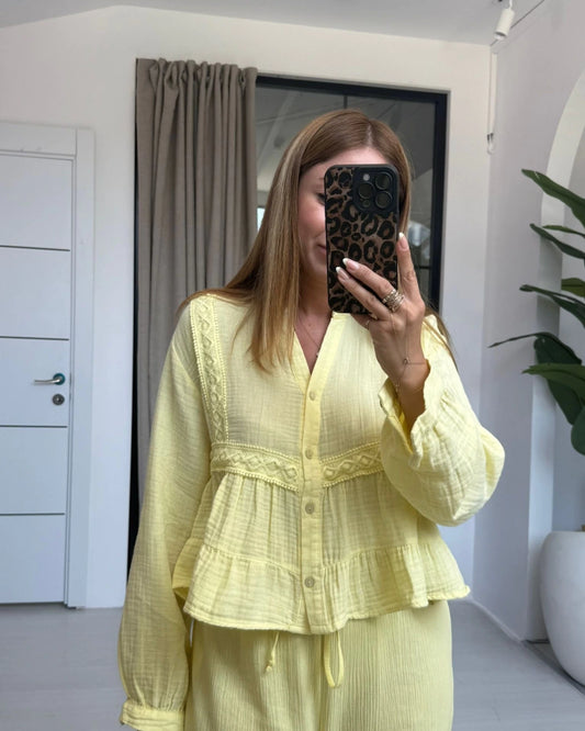 Muslin Cotton Yellow balloon Sleeve Shirt