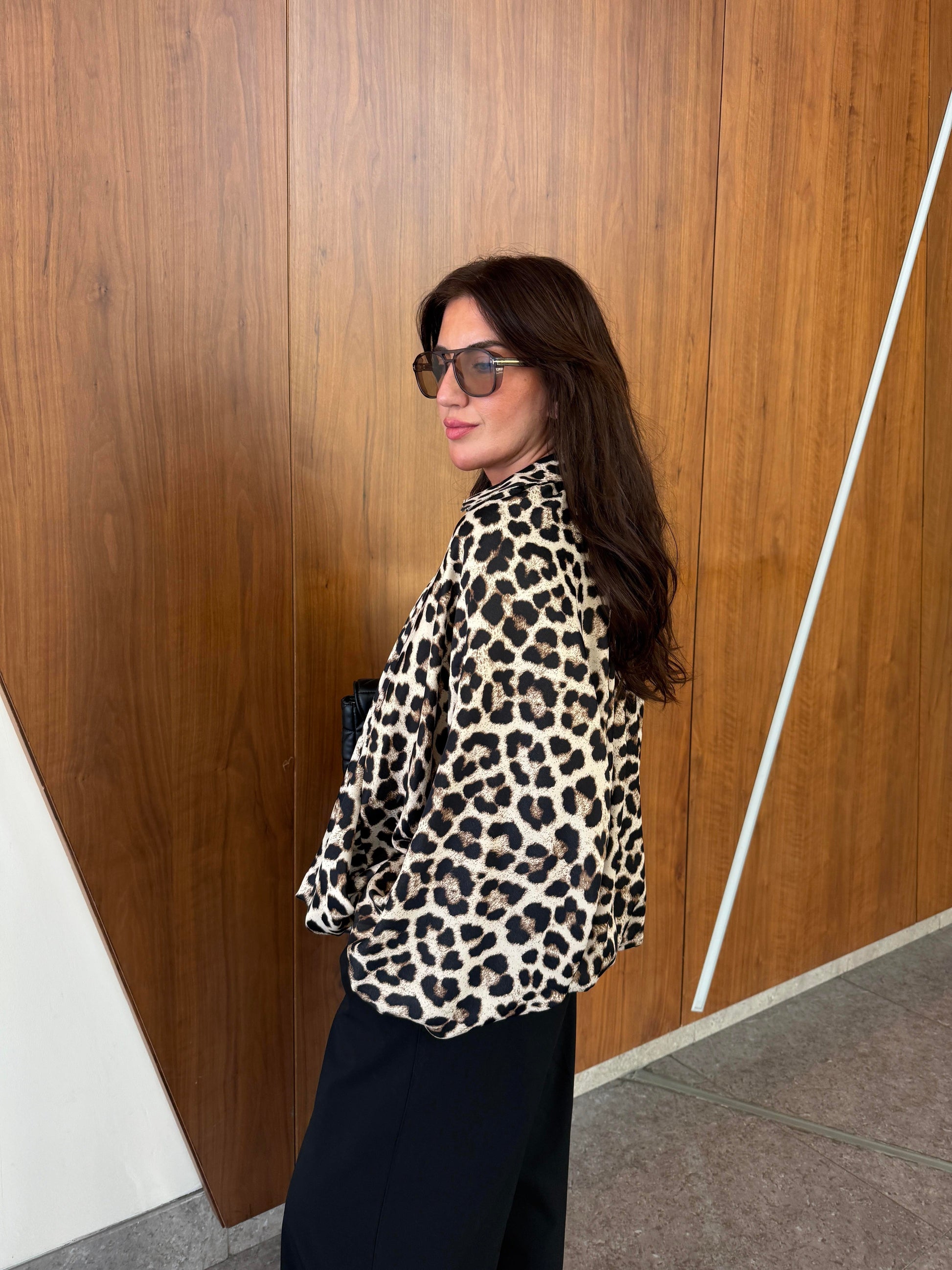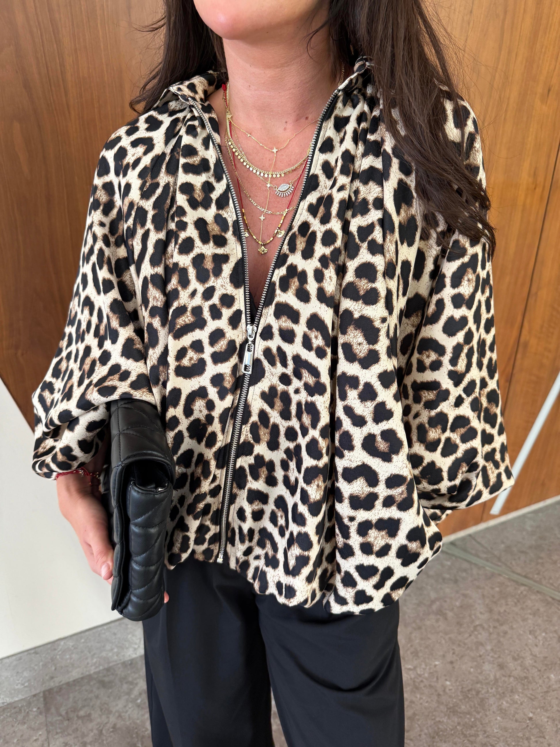 Oversized Leopard Satin batwing sleeve Jacket