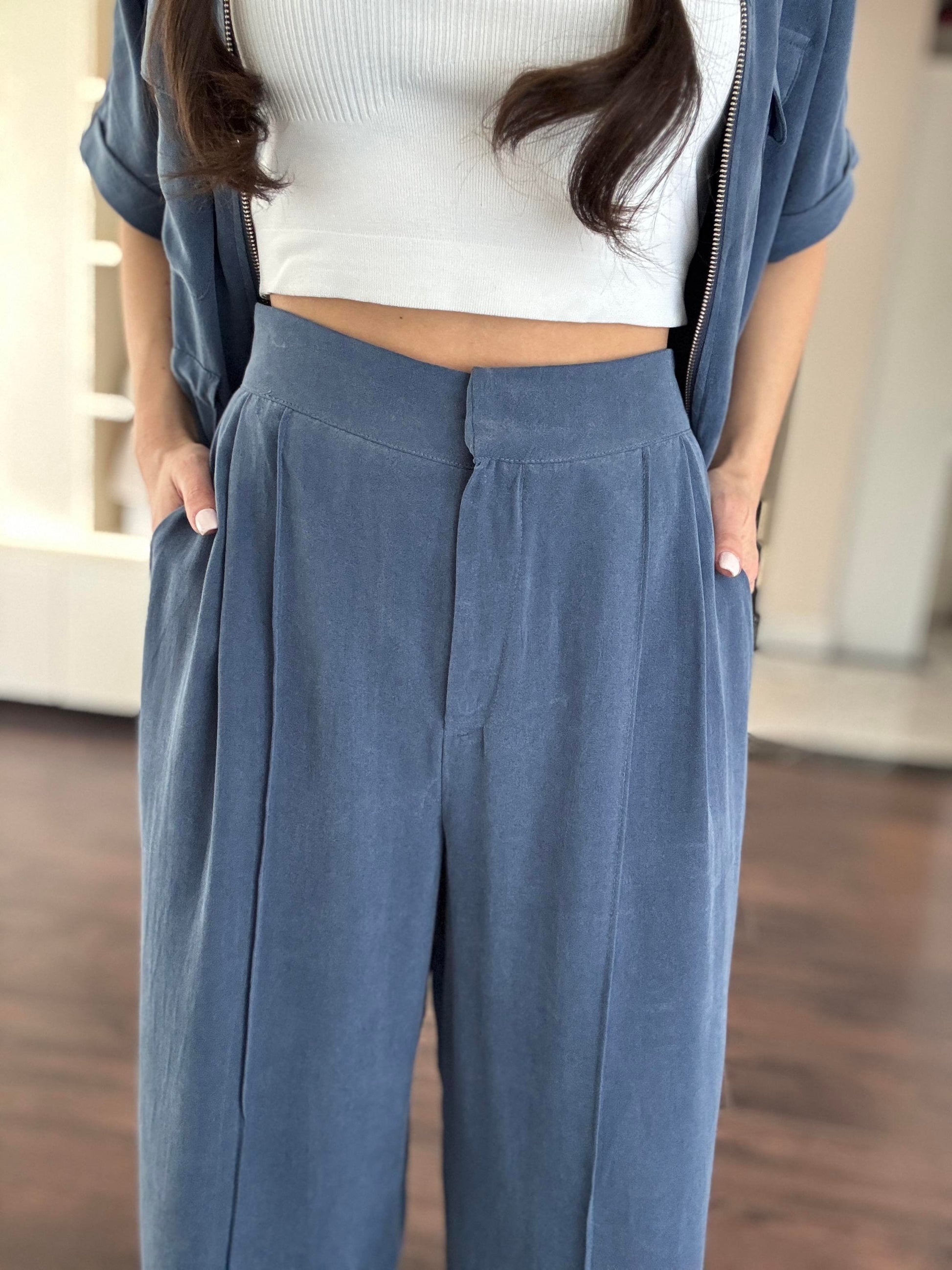 Viscose washed Blue Set with Zipper details